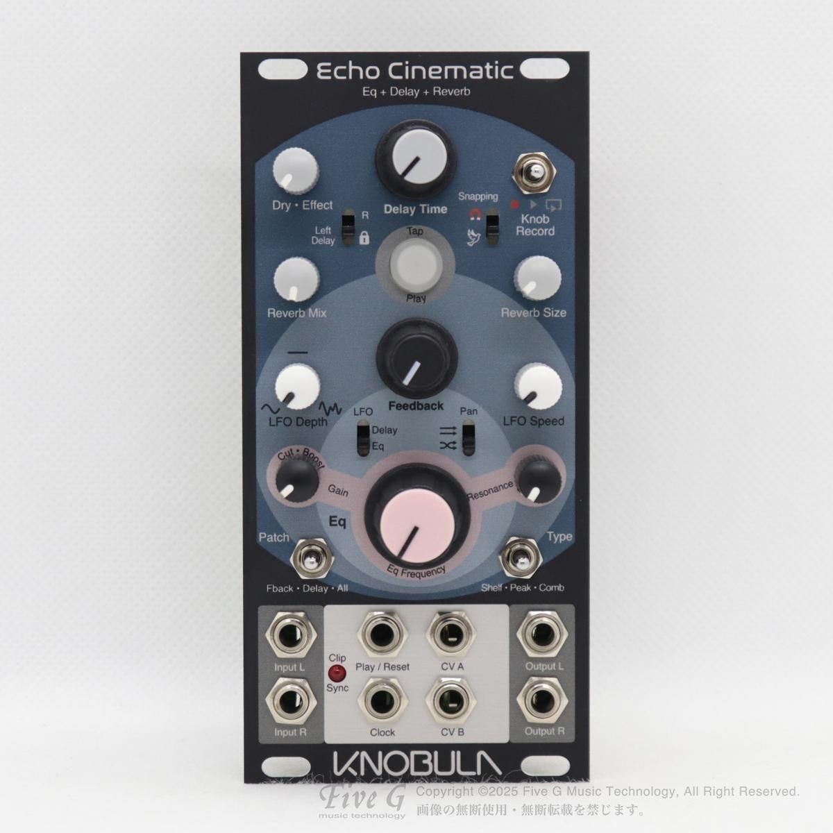 Echo Cinematicは、1980年代のジャマイカ/ロンドンのダブミュージック文化に着想を得た、実用的かつ遊び心のあるステレオFXモジュールです。最大2秒のディレイ、3種のEQ(シェルフ、ピーク/ノッチ、コンブ)、リバーブ、2系統のLFO、CV制御、30秒のノブレコーダーなどを搭載。パッチング次第でフィードバックループを自在に操ることができ、クラシックなダブから実験的サウンドまで幅広く対応します。