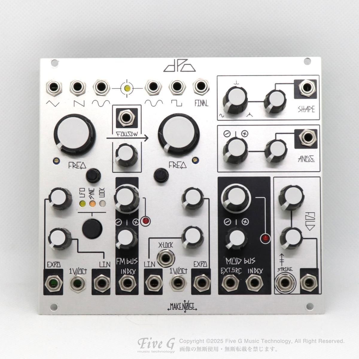 Make Noise DPO (ディー・ピー・オー)は FM やウェーブ・シェイピングを搭載し複雑な波形を生み出す事ができるオシレーターモジュールです。VCO として、又は複雑なシグナルソースとして両方の機能を有するデュアル・プライマリー・オシレーター (Dual Primary Oscillator = DPO) です。